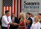 Romney greets supporters during a campaign rally at Somers Furniture in Las
